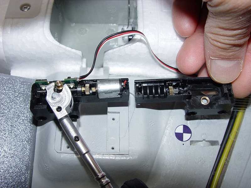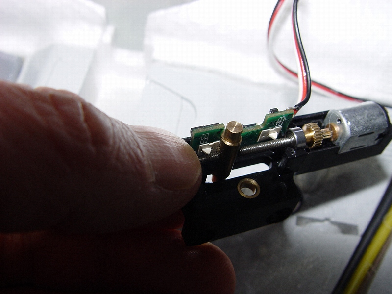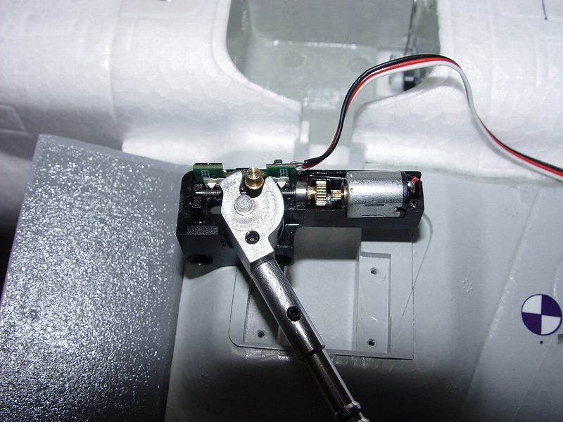 これはMAIN GEAR用ですが、NOSE GEARも同じ構造です。 リトラクトを4本のSCREWで分解すると、 こうなっています。 CAMとGEAR STRUT部分を外すとSCREW JACKが見えます。 SCREW JACKがGEAR RET方向に回転すると両サイドがピンとなったナットは 画面左側に動きます。そして白いLIMIT SWを押すとモーターは止まります。 BACKUPとしてTIME DELAYもありモーターは決められた時間でも止まります。 A320のNOSE GEARトラブルの原因はLIMIT SWの作動が遅くスライドするピンが スロットに強く当たって止まったようです。 そのため、反対方向にモーターが回ろうとしても大きな抵抗となってスタックしました。 この対策としてスロット部分削って大きくするとトラブルは解消しました。 さらにMAIN GEARでも同様のトラブルがありRETしたまま動きません。 スロットを削っても効果はありませんでした。 サーボテスターをつないで、RET方向にパワーを入れるとモーターは回転して 画像の左側のSWを押すとすぐに、停止します。 SWを押さなければしばらく回転した後、自動停止します。 次にGEAR EXT方向にパワーを入れてもモーターは回りません。 正常ならば、この状態でパワーを入れるとRETとは逆方向に回り、右側のSWを 押すとすぐに止まるか、一定時間回転後に止まらなければなりません。 右のSWを押すとモーターは回転を始めるのでこのLIMIT SWのトラブルと判断しました。 |